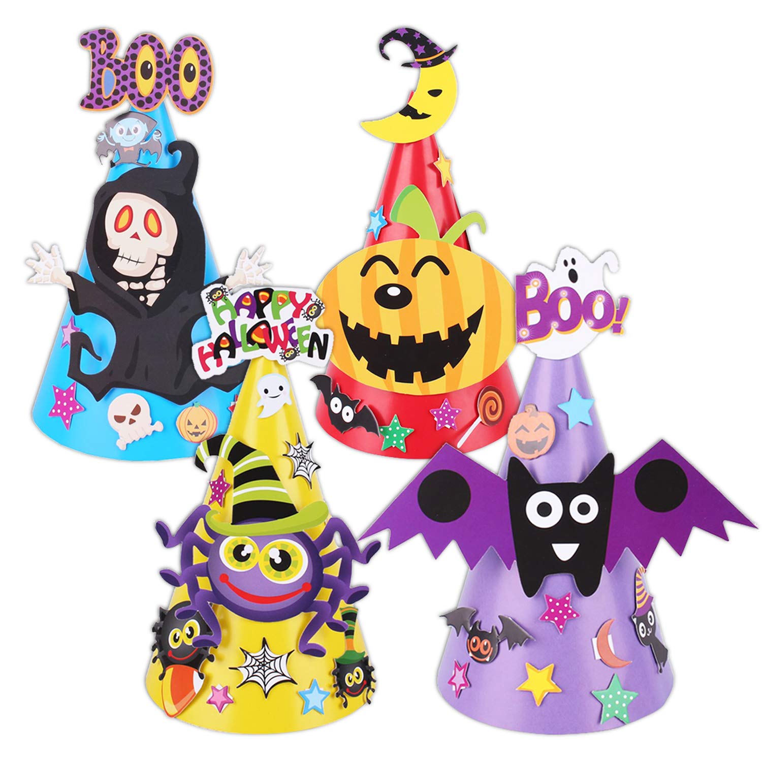 Amazon.com: Fullsexy 4 Pcs Halloween Party Hats Cartoon Paper Cap ...