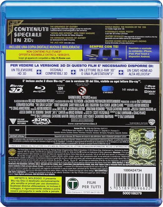 Il Grande Gatsby Blu-ray 2D + Blu-ray 3D ;The Great Gatsby: Amazon ...