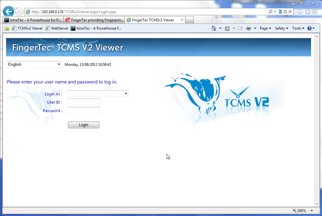 TCMS V2 Viewer Installation on Windows Server 2012 | FingerTec ...