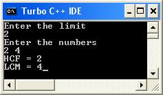 Turbo[C++]- Program to calculate HCF and LCM of two numbers in C ...