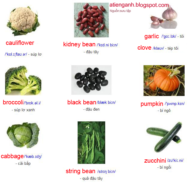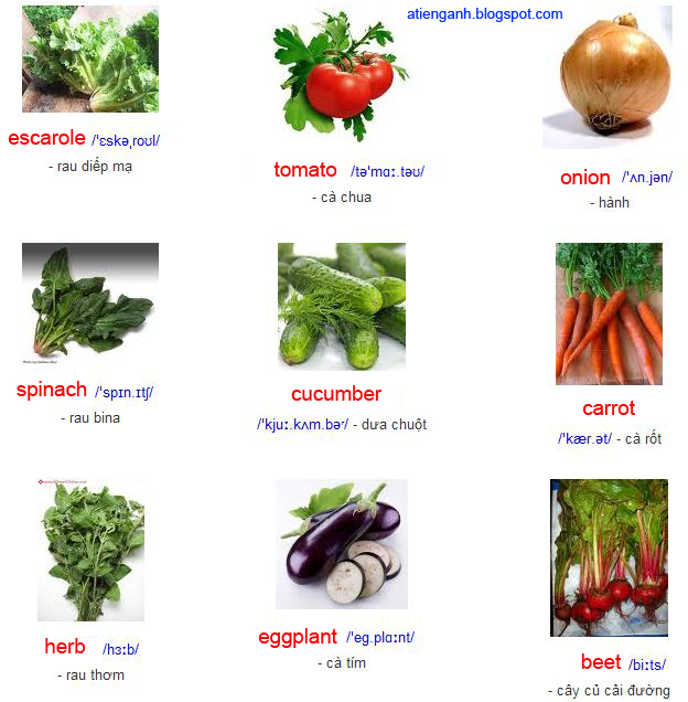Hoc tieng anh qua hình ảnh rau cu qua trong nha hang - AROMA Tiếng ...