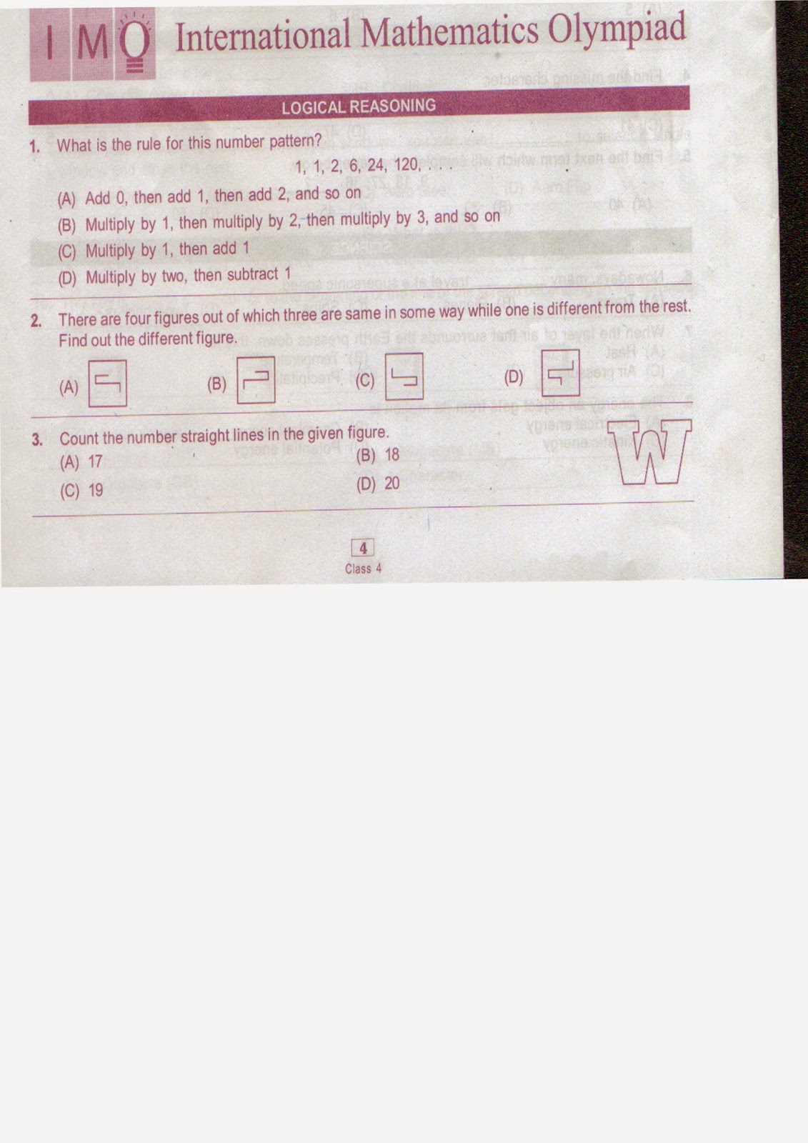 IMO Sample papers for Class 4 | Be Maths Smart