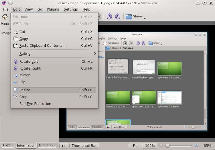 Resize images on OpenSUSE 12.2 using GwenView