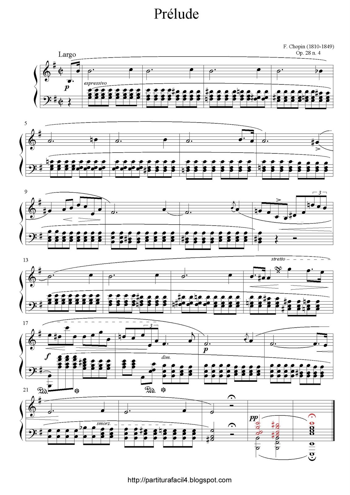 Partitura: Frederic Chopin - Preludio (Prelude) Nº 4 Op. 28 | Clases ...
