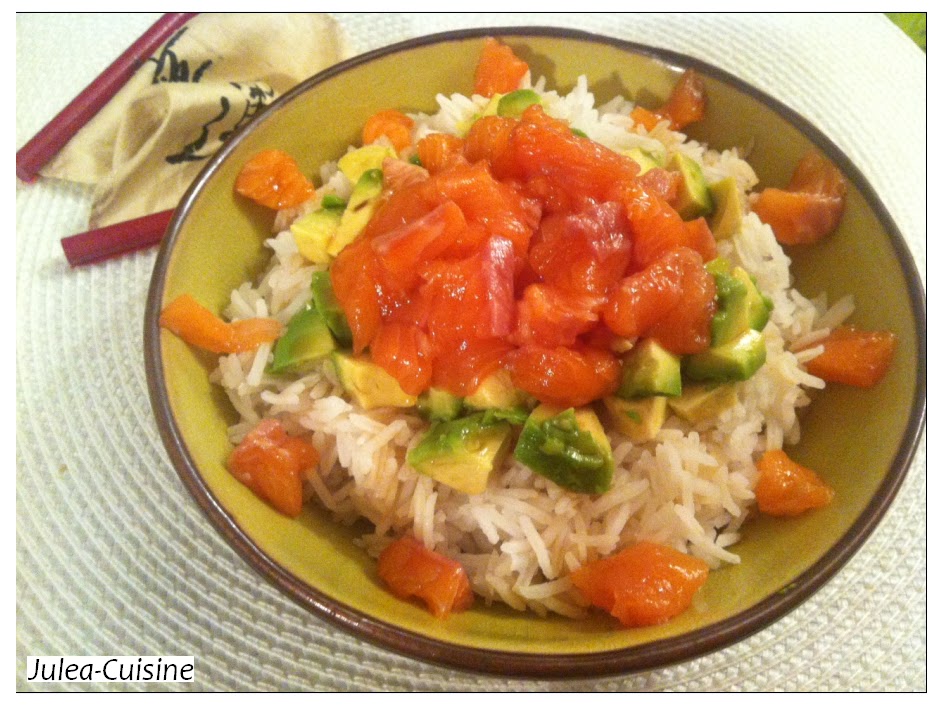 Tartare de saumon, avocat sur riz à la japonaise - Passion cuisine ...