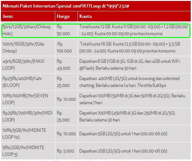 Paket Simpati Loop, Paket Internet Termurah 16GB Harga Mulai 100rb ...