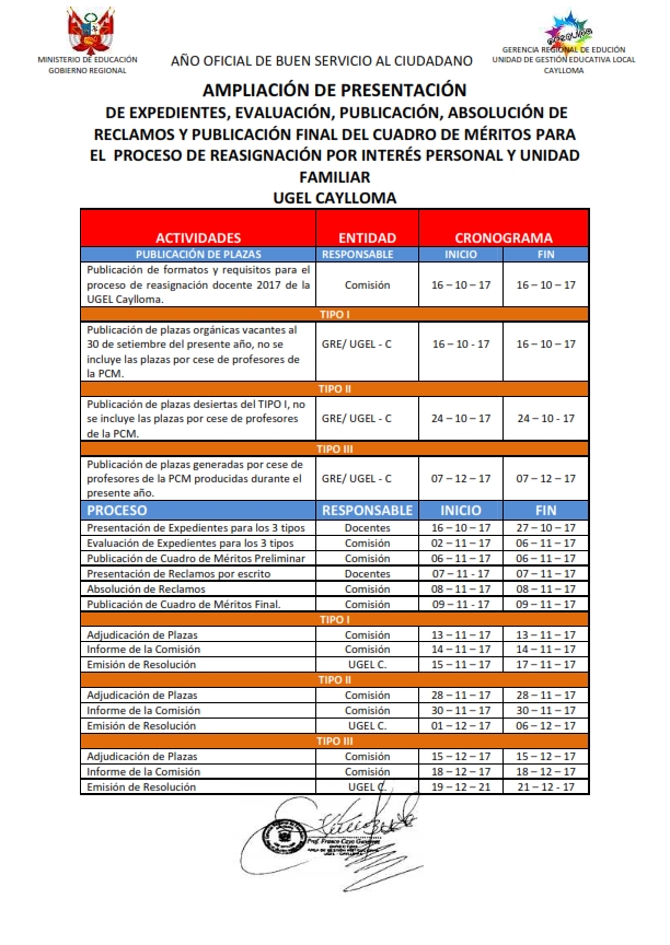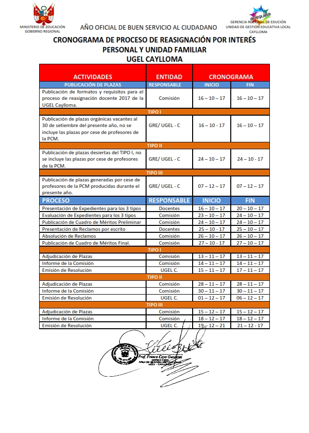 Cronograma de Reasignación Docente 2017 - Ugel Camaná - Noticias ...
