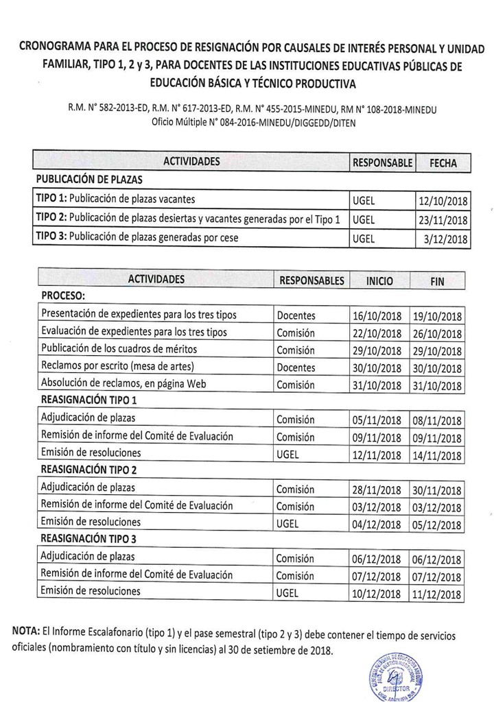 Cronograma proceso de Reasignacion Docente 2018👩 🏫📖 | UGEL 03 ...