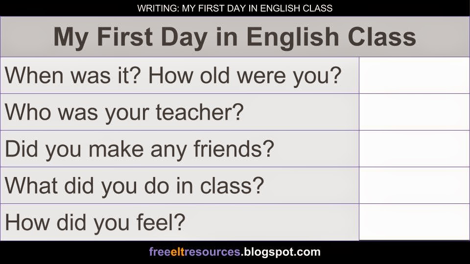 FREE ELT RESOURCES: WRITING: My First Day in English Class